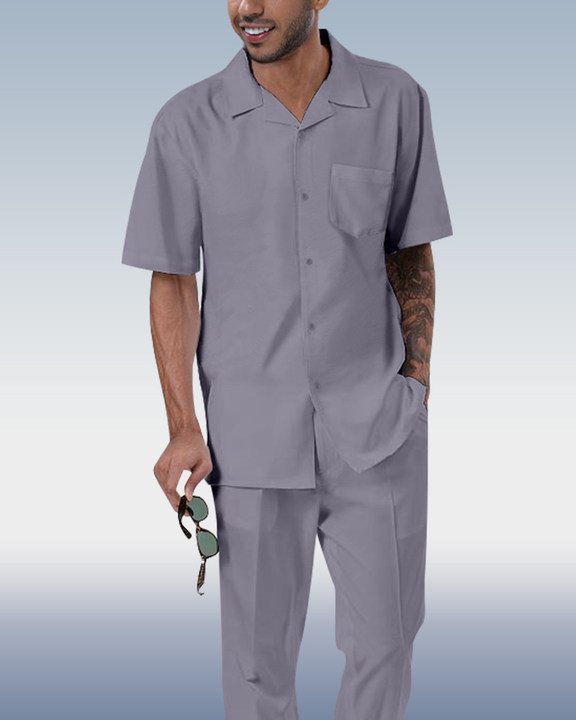 Suitmens Men's Solid Color Short Sleeve Shirt Walking Set 4 Colors 373